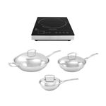 Este especial incluye Cocina de Inducción IC-450 + Sartén Grande 30 cm + Sartén 24 cm + Mini Sartén 18 cm:
