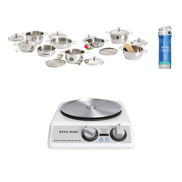 Este especial incluye Juego Gourmet 17 piezas + Multi Cooker + Botella Filtrante Rena Ware:
