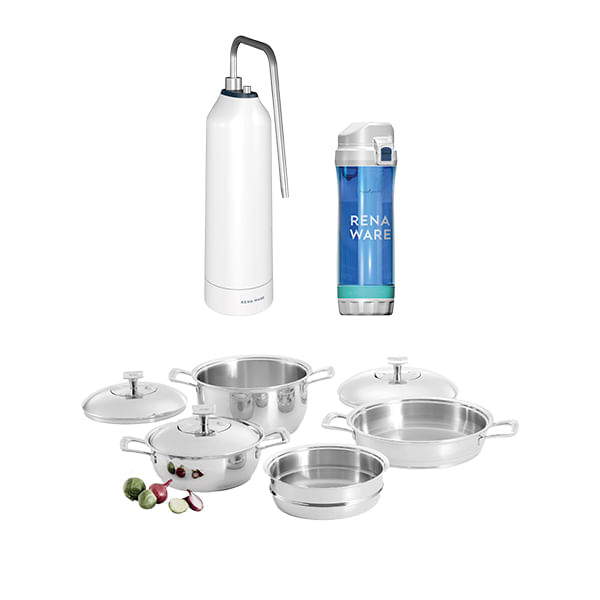 Este especial incluye Filtro de Agua Mod Portátil RWF-228 + Juego Chef I 7 piezas + Botella Filtrante Rena Ware: