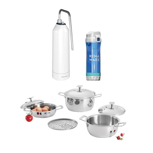 Este especial incluye Filtro de Agua Mod Portátil RWF-228 + Juego Chef II 7 Piezas + Botella Filtrante Rena Ware: